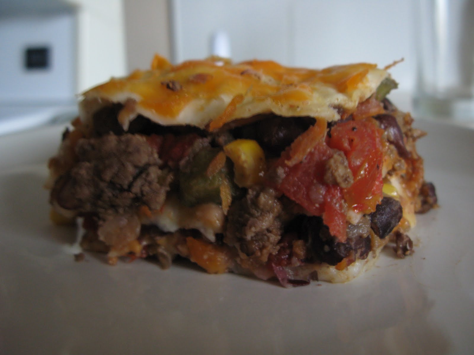 In a slow cooker layer about 1 cup meat-bean mix, one tortilla and 1/3 cup cheese. (In my 6-quart oval slow cooker, I did 2 cups, 2 tortillas, and 2/3 cup cheese, using a total of 6 tortillas.) Repeat to use all ingredients.